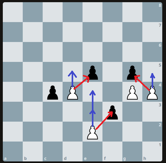 – Sotilas lyö vinottain yhden ruudun vasemmalle tai oikealle eteenpäin.
